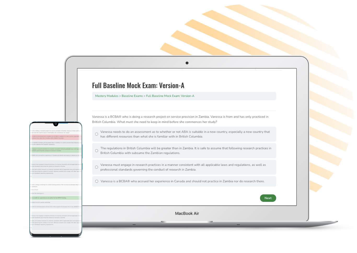 The Gold Standard of Evidence-Based BCBA® Mock Exams! This exam includes one attempt at our full-length mock exam, complete with answer explanations!